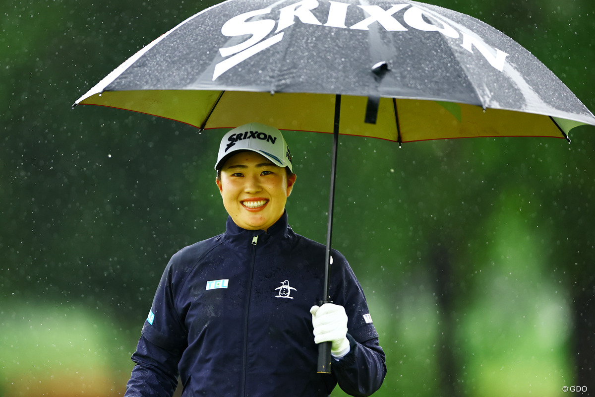 ◇国内女子◇KKT杯バンテリンレディスオープン 最終日(19日)◇熊本空港CC(熊本)◇6595yd(パー72)◇雨(観衆3167人) 右手を添えるようにして握..