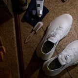 山脈や岩肌など、自然をモチーフにしたデザインも印象的で、ゴルフシューズとしての機能性だけでなく、デザイン性も兼ね備えたモデルに仕上がっている。
