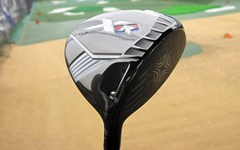 試打クラブは、ロフト角9度。シャフトは純正『XR』のSフレックス。スクエアポジションだと、フェースはかなり右を向く。ヘッドをポンと置くと、フェースがゴロッと開く。この影響でオープンフェースになってしまう。シャフトはワッグルすると、中間部分から先端部分にかけてしなる。硬さの目安となる振動数は242cpm。純正シャフトのSフレックスとしては、平均的な硬さだ。クラブの長さは45.5インチ(60度法計測値)で、バランスはD1。クラブ重量は302.7g。