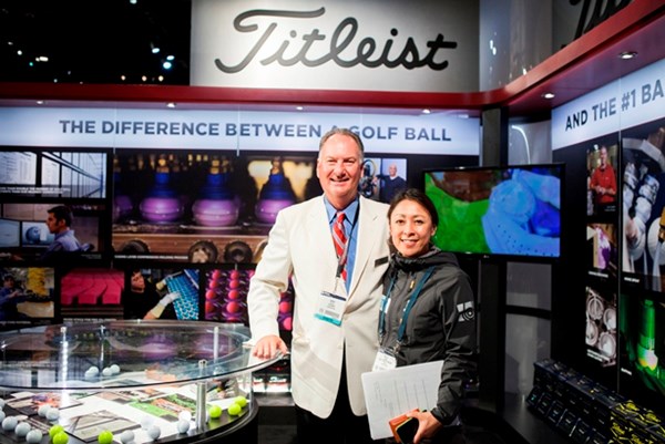 左:タイトリスト ゴルフボール プレジデント ジェリー・ベリス、右:GDO編集長 向井康子