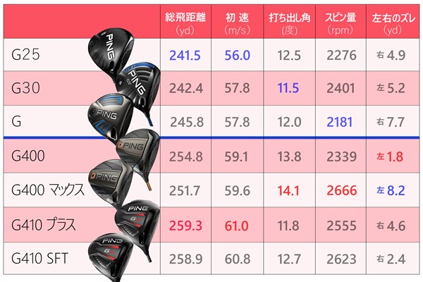 全機種ロフト角10.5度で測定/各モデル5球ずつの平均値
