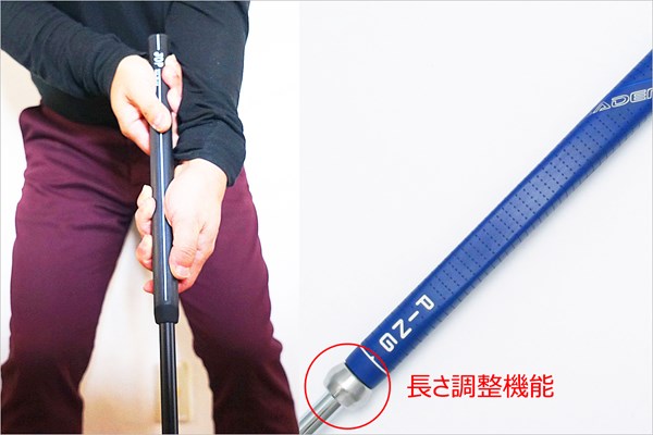 赤い〇部分がシャフト長の調整機能。アームロック式は36~38インチぐらいで試してみよう